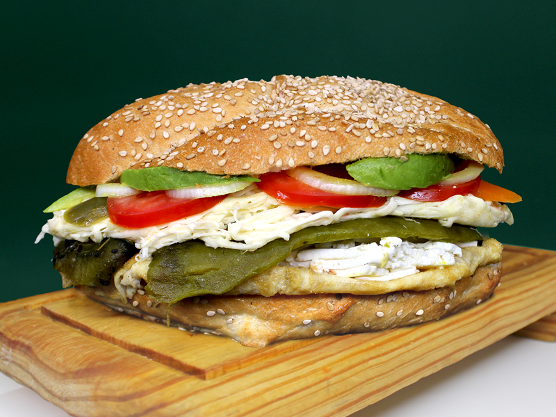 Rico Jamón con Queso Oaxaca acompañado de rebanadas de Jitomate, Cebolla, Aguacate, Queso Canasto.