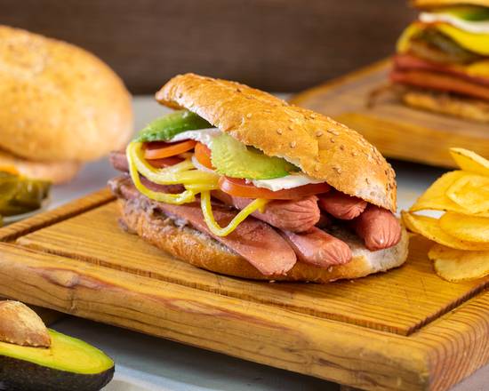 Torta de milanesa + salchicha + queso oaxaca