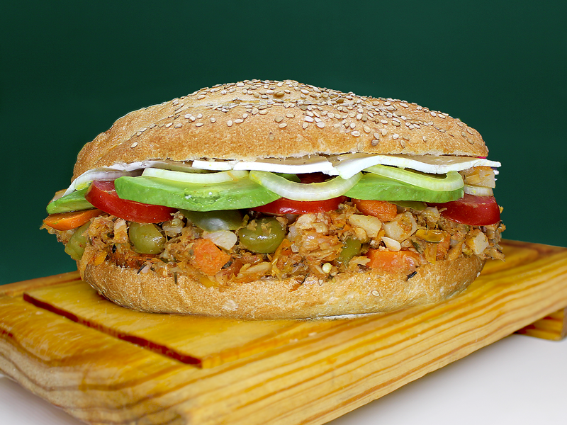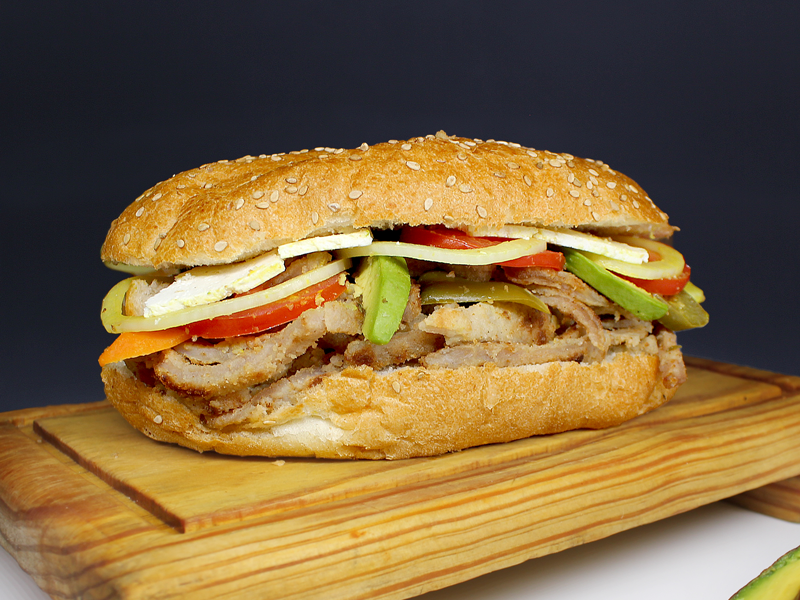 ¡La torta de la capital! Delicioso Pollo combinado con Chorizo y Tocino todo cubierto de Rico Queso Oaxaca.
