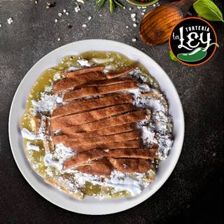 Torta de Chilaquiles acompañada de pollo, milanesa, o huevo.