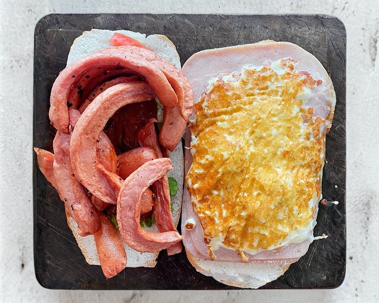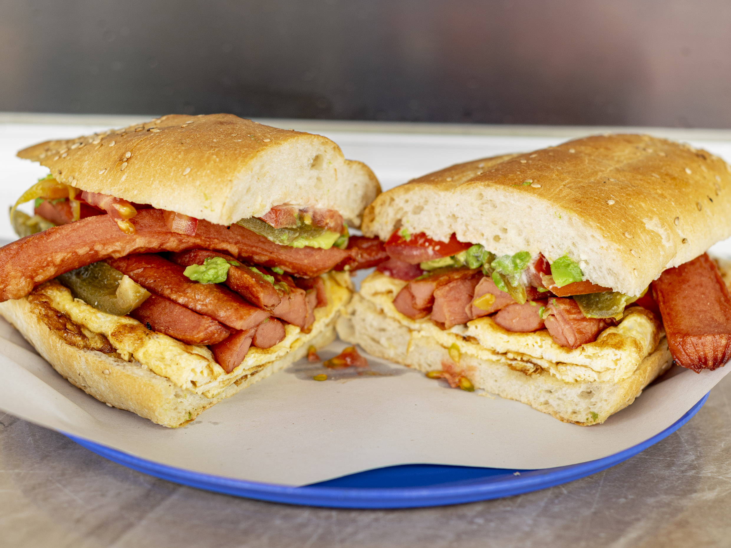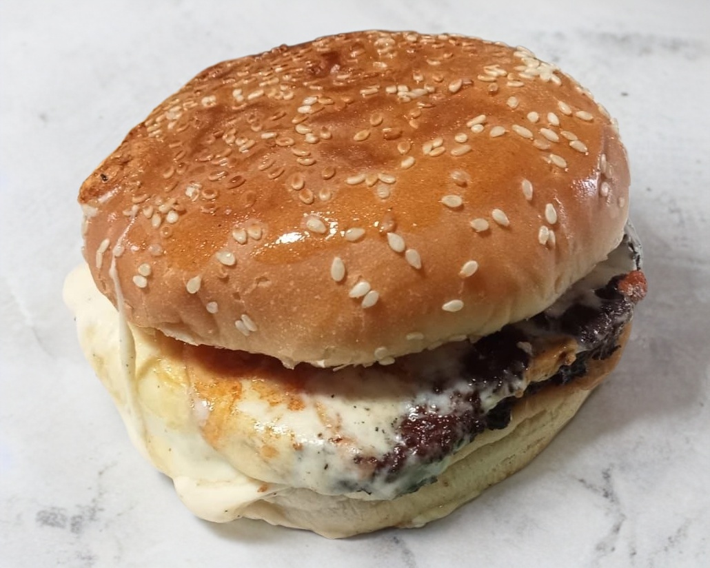 Pan bimbo de hamburguesa, deliciosa carne arrachera 90 gramos aprox, jitomate, queso huajaca, cebolla, salsa catsup, mayonesa y mostaza.