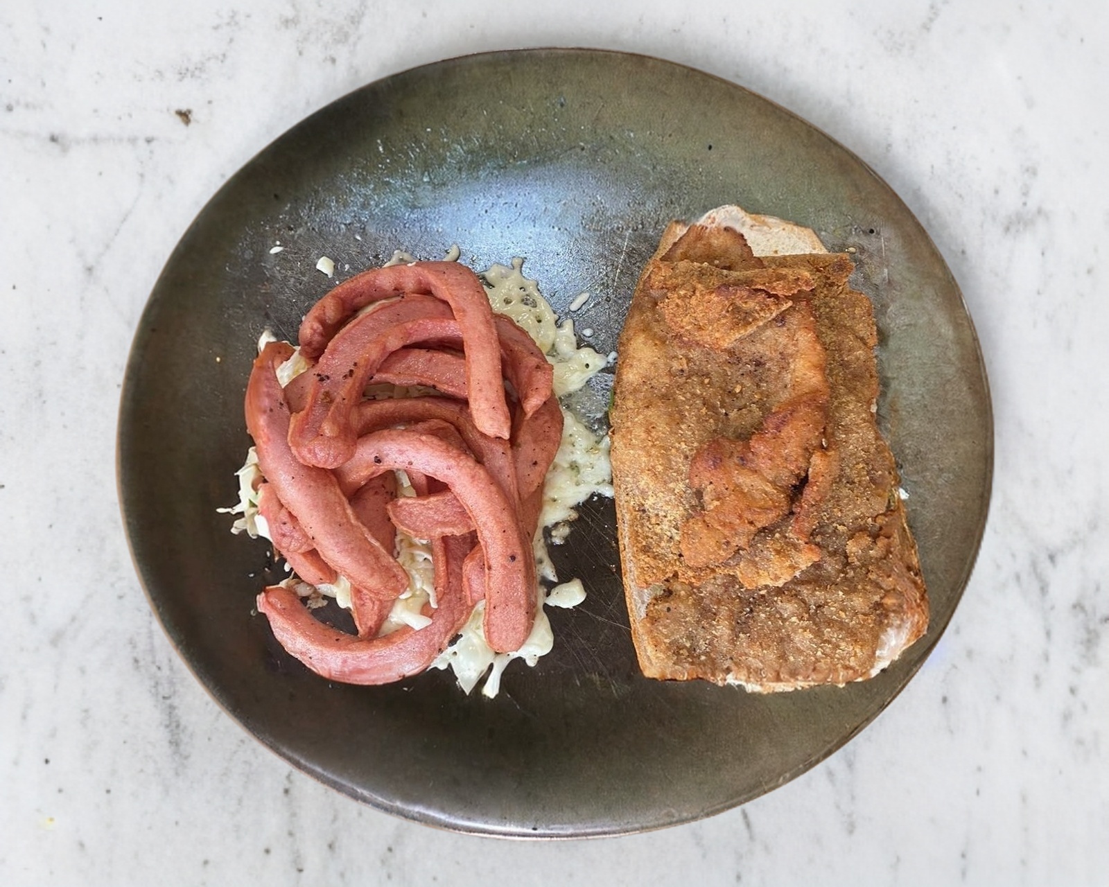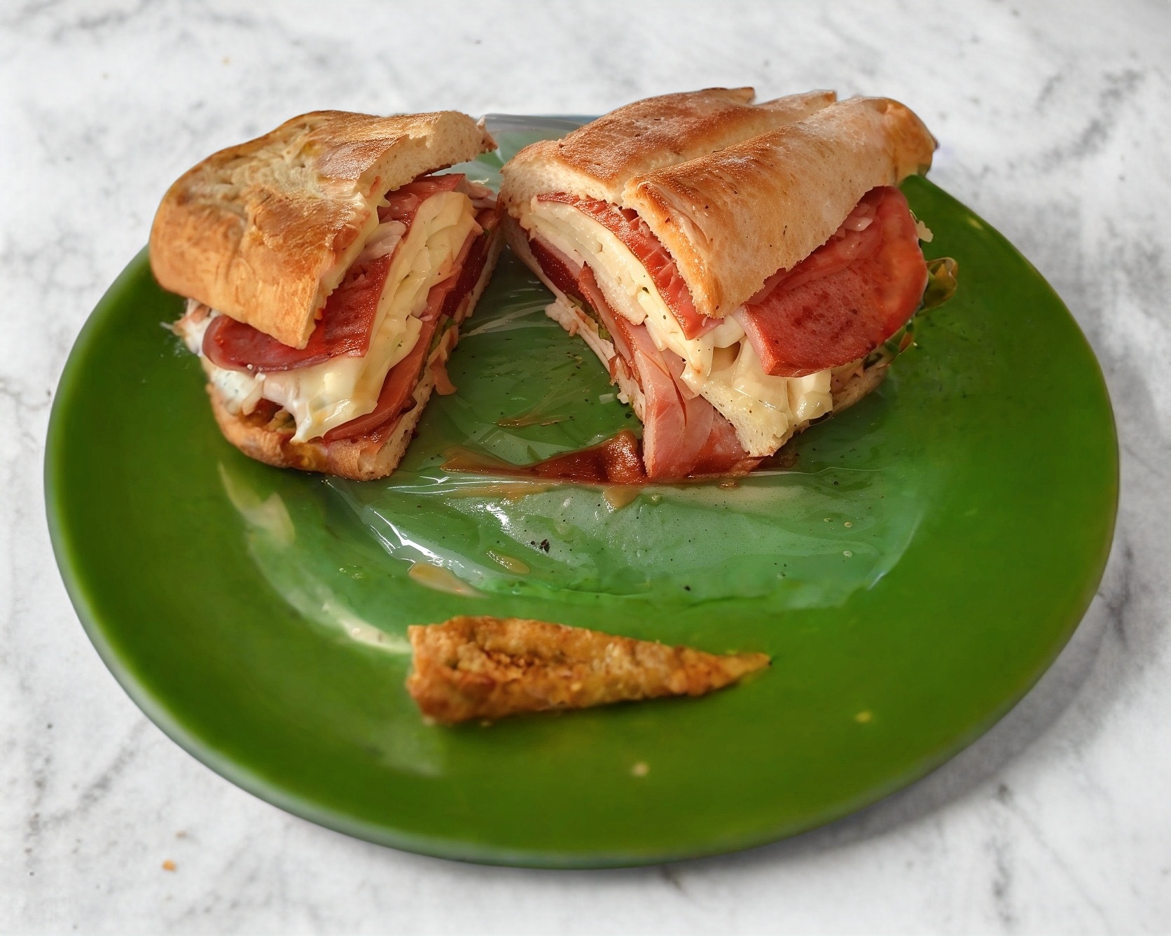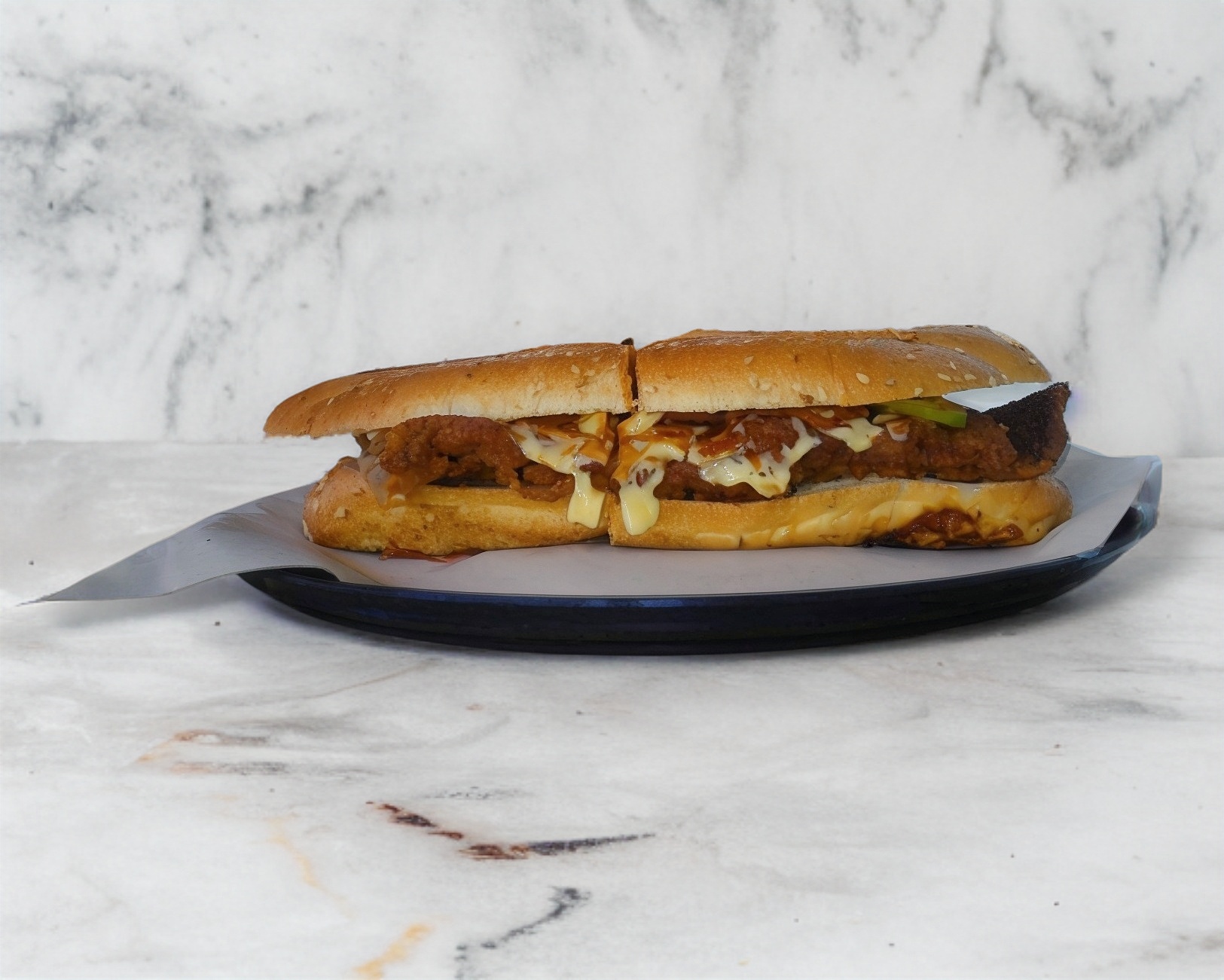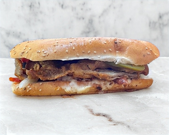 Deliciosa pechuga de pollo, jitomate, cebolla, captsu, mostaza