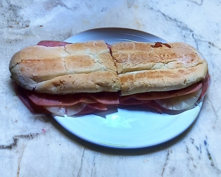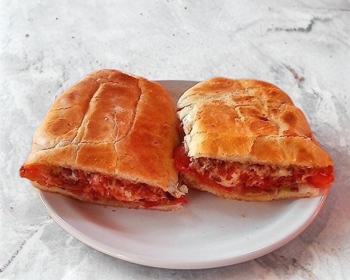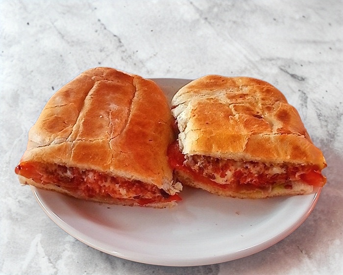 Tortilla de harina rellena de jamón, queso amarillo y quesillo