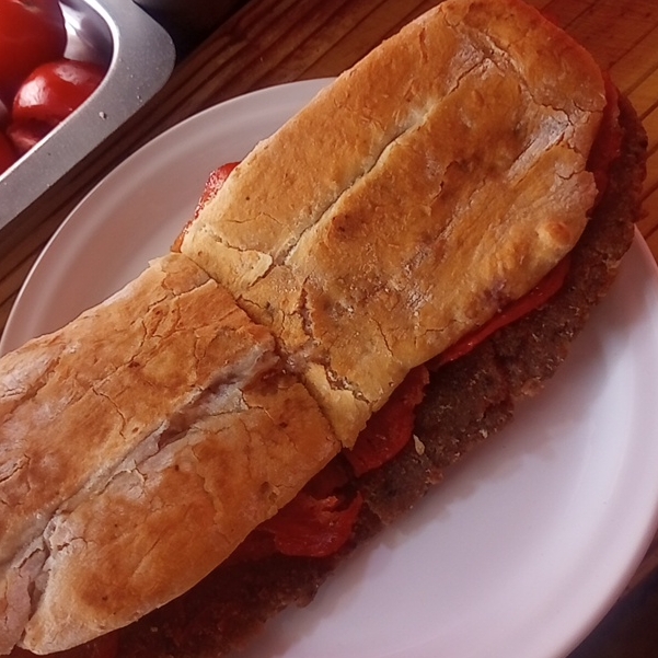 Tortilla de harina rellena de milanesa, chorizo y quesillo
