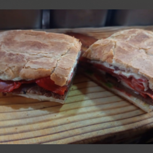 Tortilla de harina rellena de pierna, milanesa y quesillo