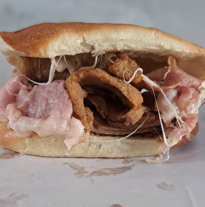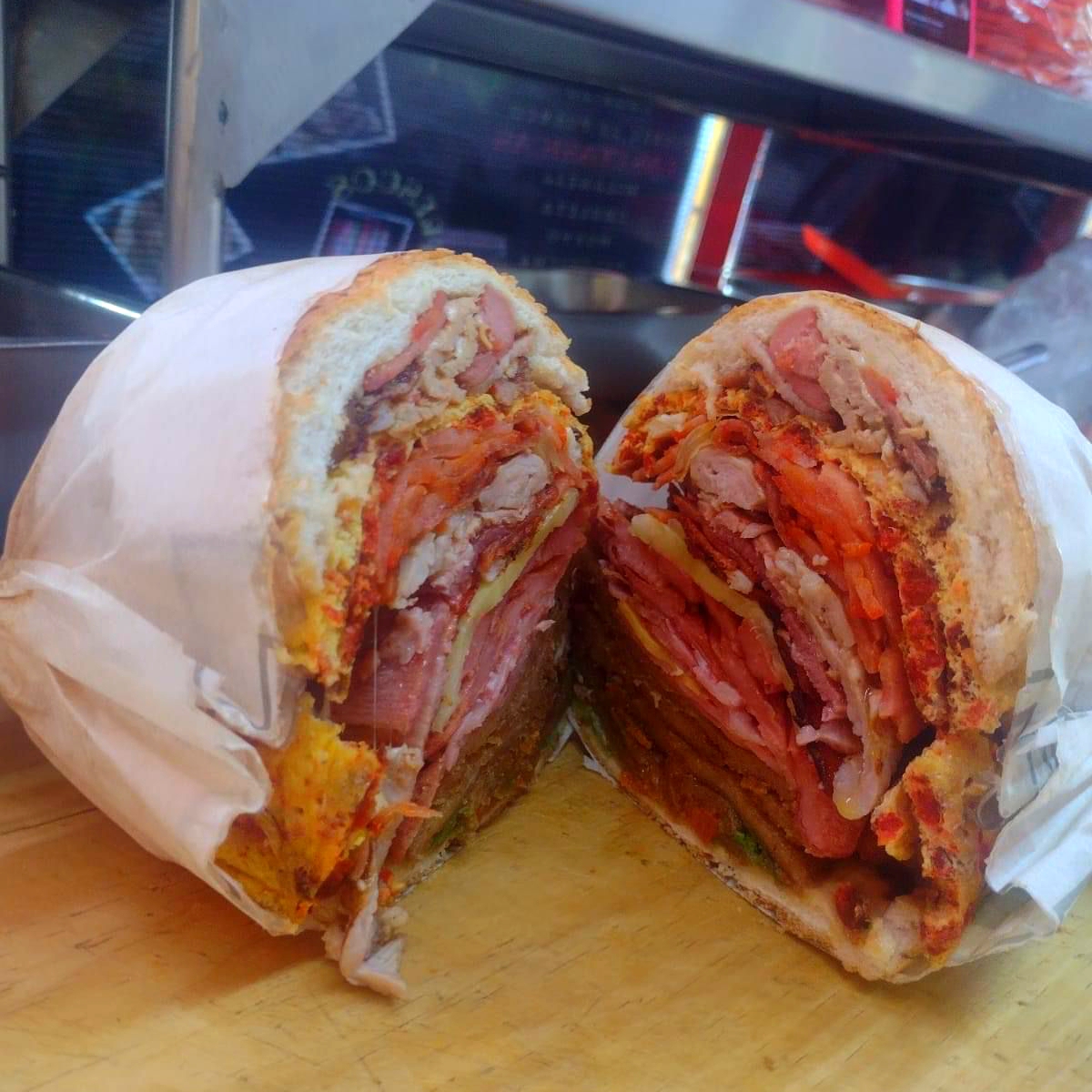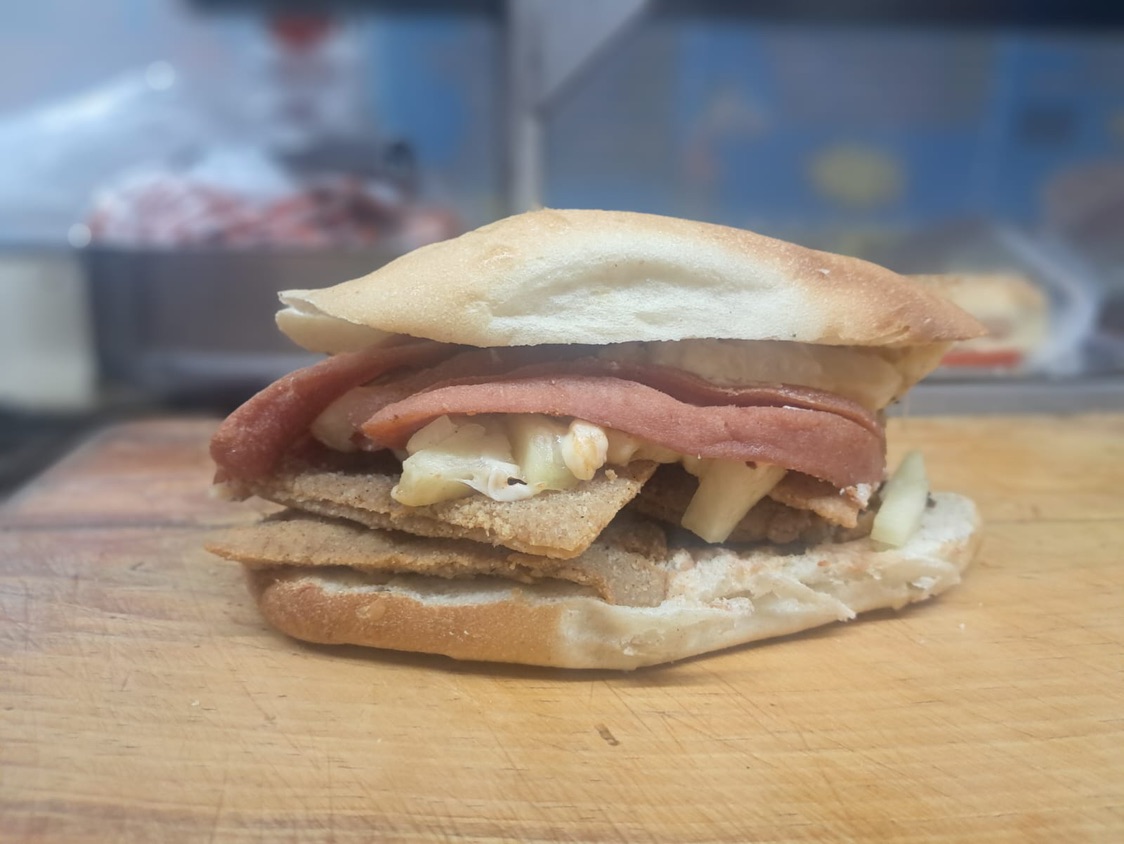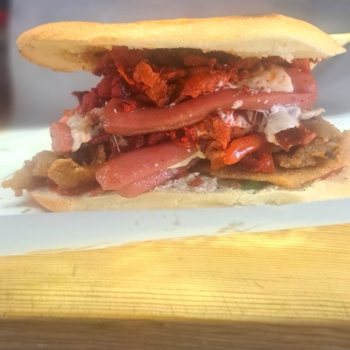 4 pzs De pan, carne, jamón, salchicha, tocino, queso amarillo y quesillo.