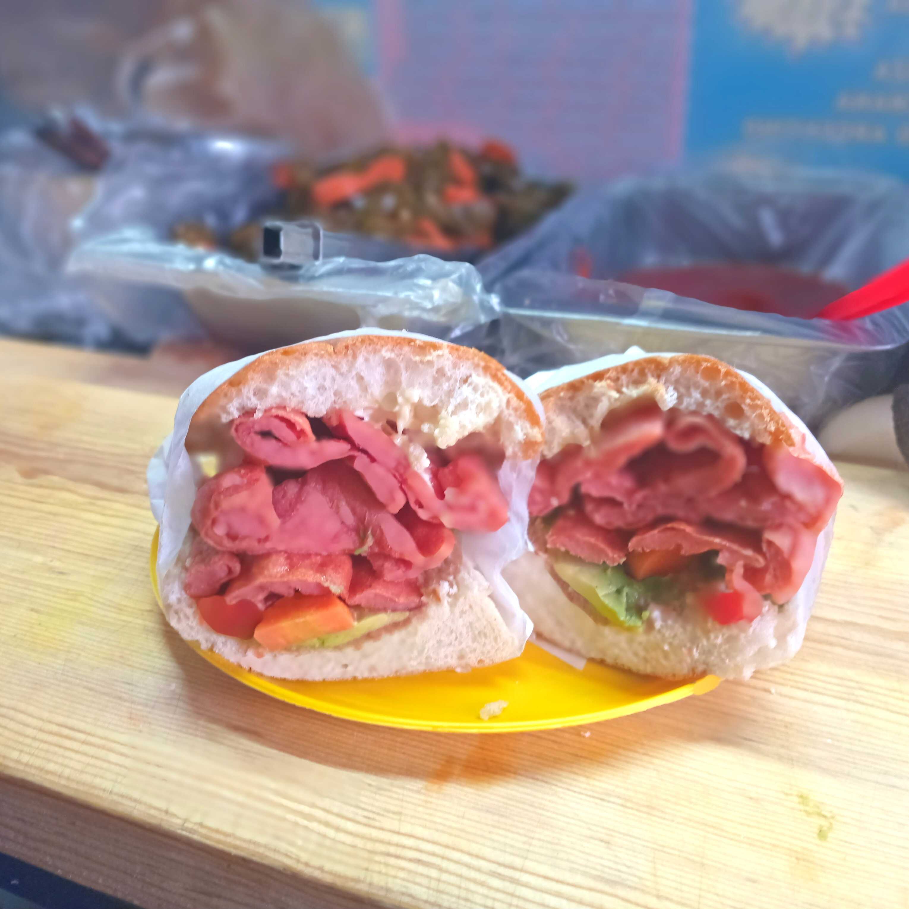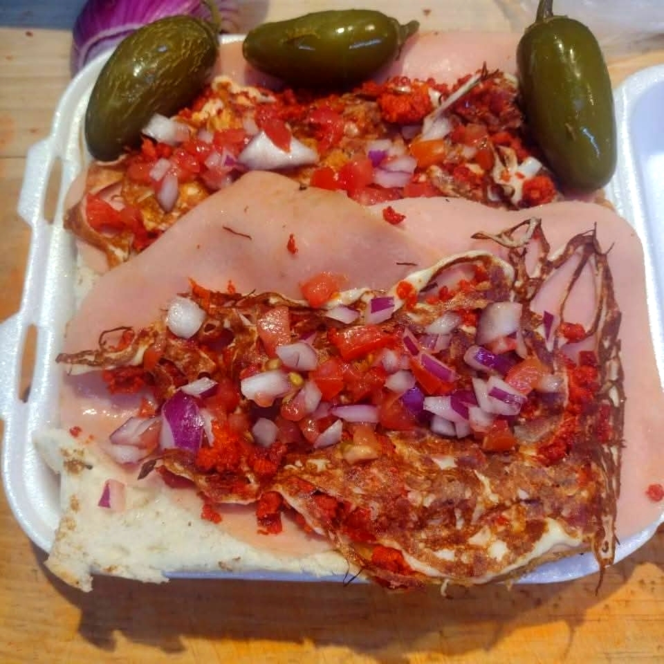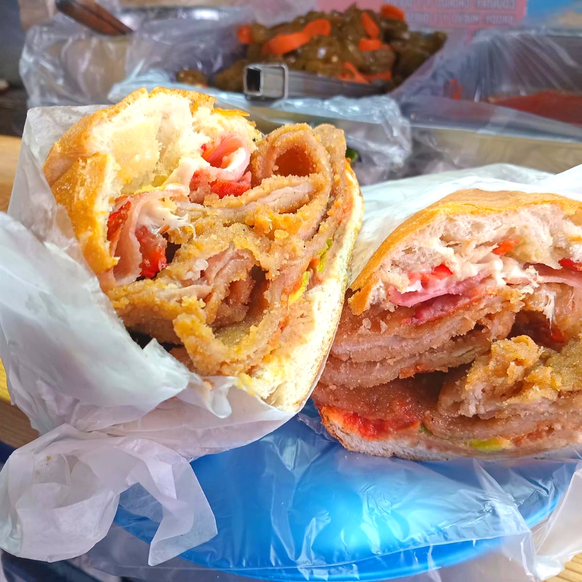 4 pzs De pan, carne, jamón, salchicha, tocino, queso amarillo y quesillo.