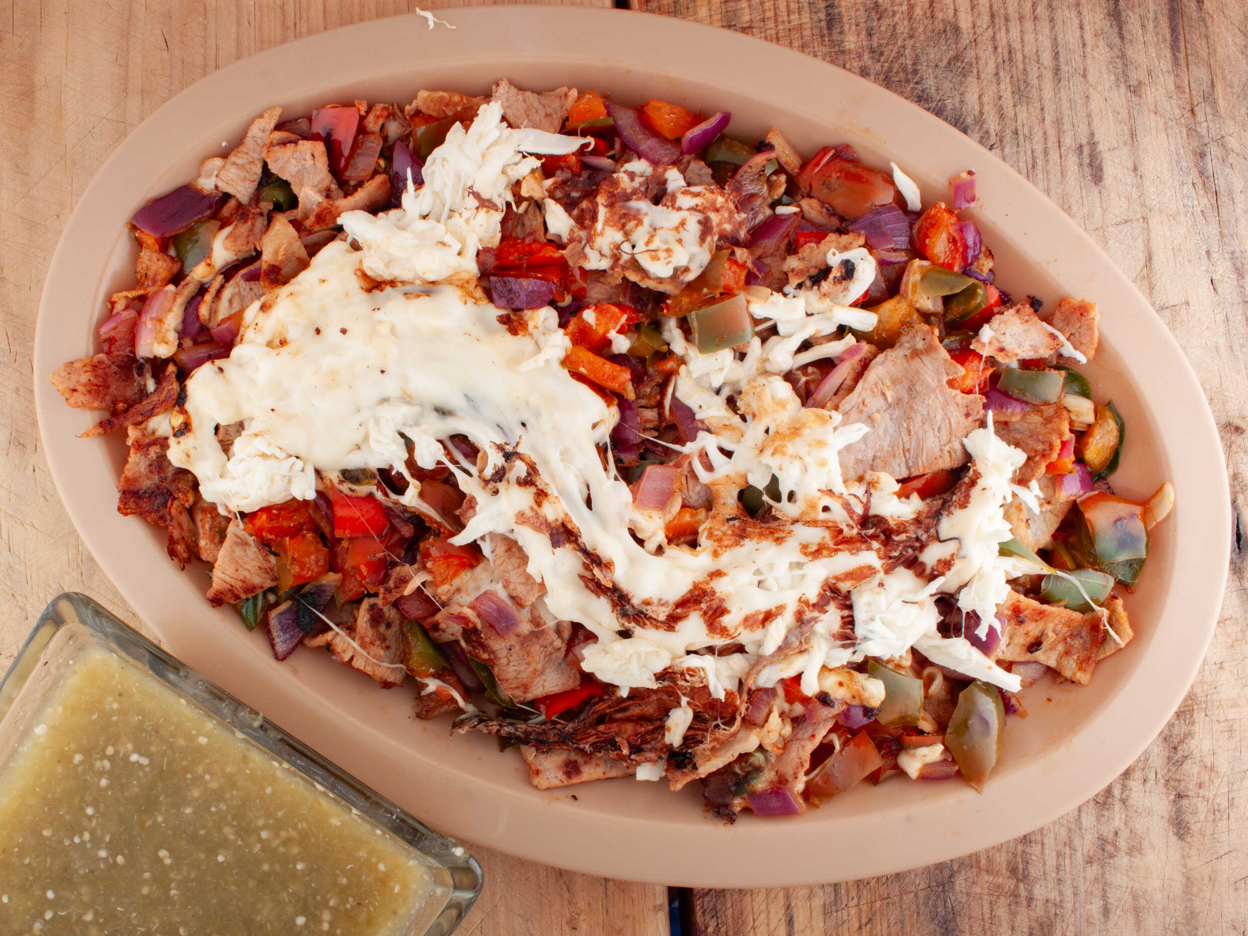 carne al pastor bistec de res cebolla frijoles y queso rallado