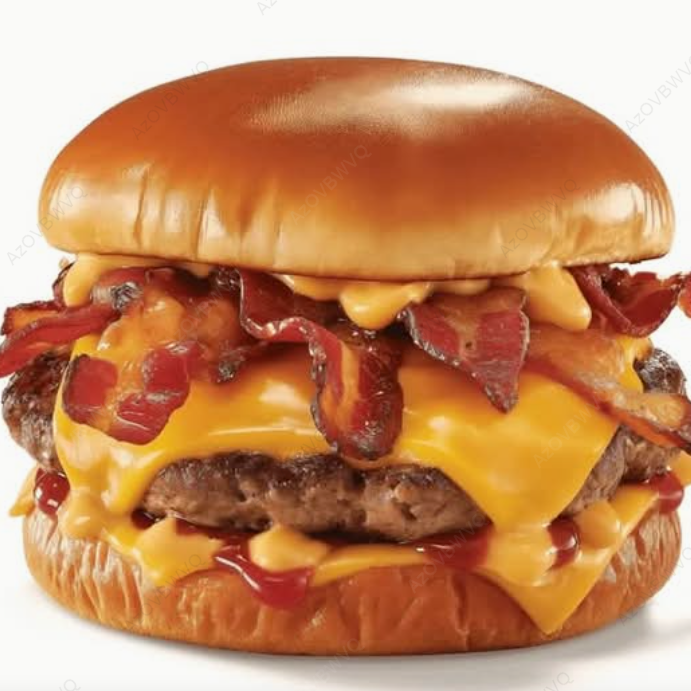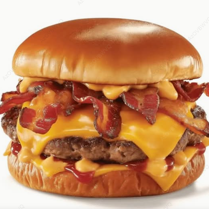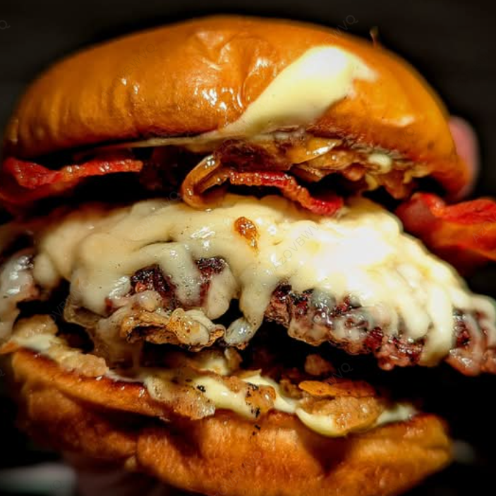 Burger de carne de res, queso americano, tocino crujiente y salsa BBQ ahumada, en pan brioche suave.