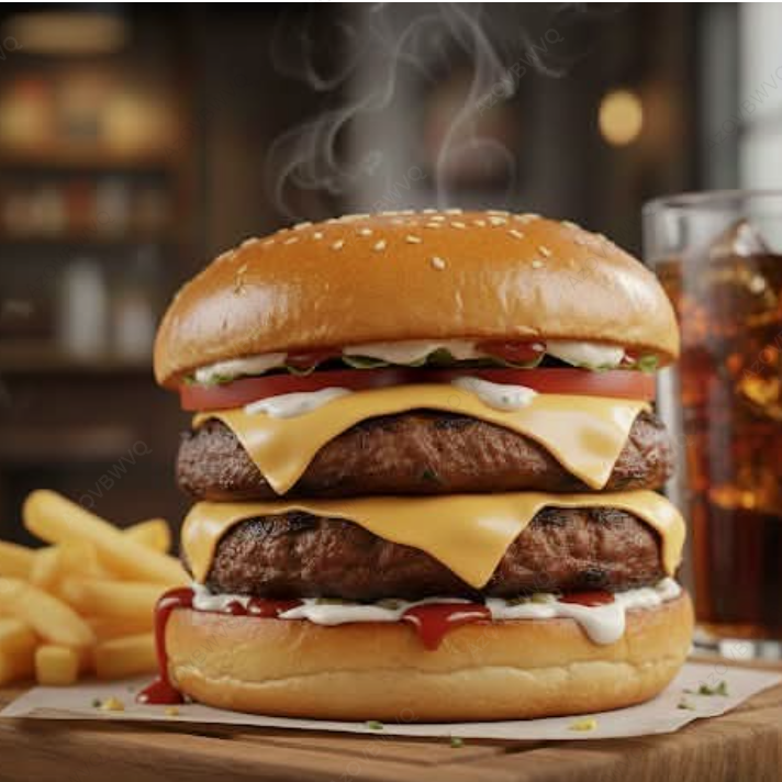 Burger con doble carne de res 120 g, doble queso americano, pan brioche, más carne, más sabor, más satisfacción.