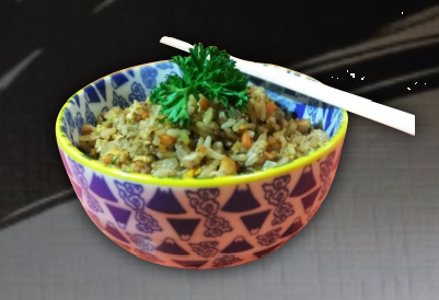 Calabaza, zanahoria, huevo, cebolla, pollo picado ( 60 gramos ) salsa por aparte de soya