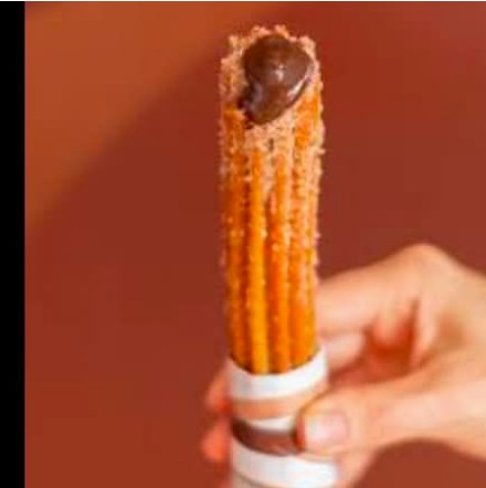 3 pzas De churros sencillos de aproximadamente 22 cm, bañados de 1 salsa dulce de su elección, 10 g de topping a su elección.