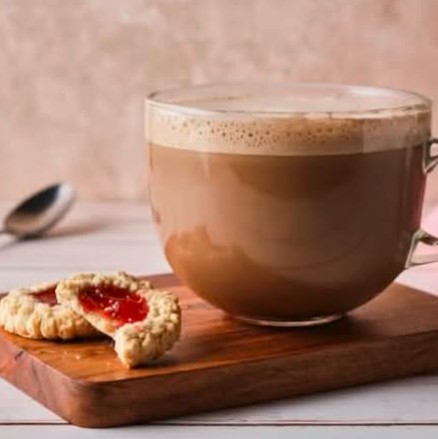 Capuchino con azúcar mascabada y esencia de vainilla chico.
