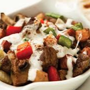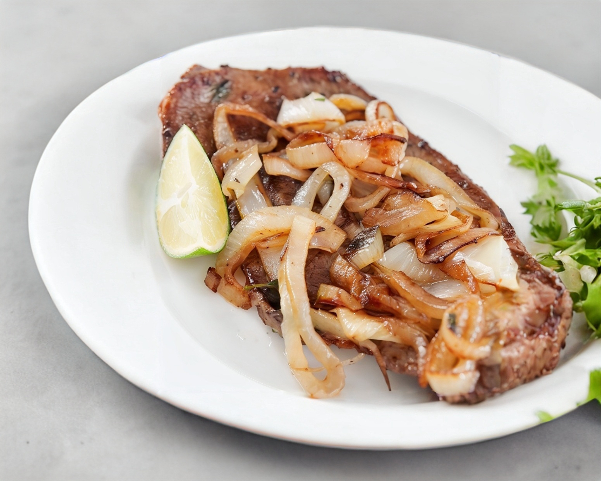 Bistec de res, pimiento morrón, cebolla y queso oaxaca