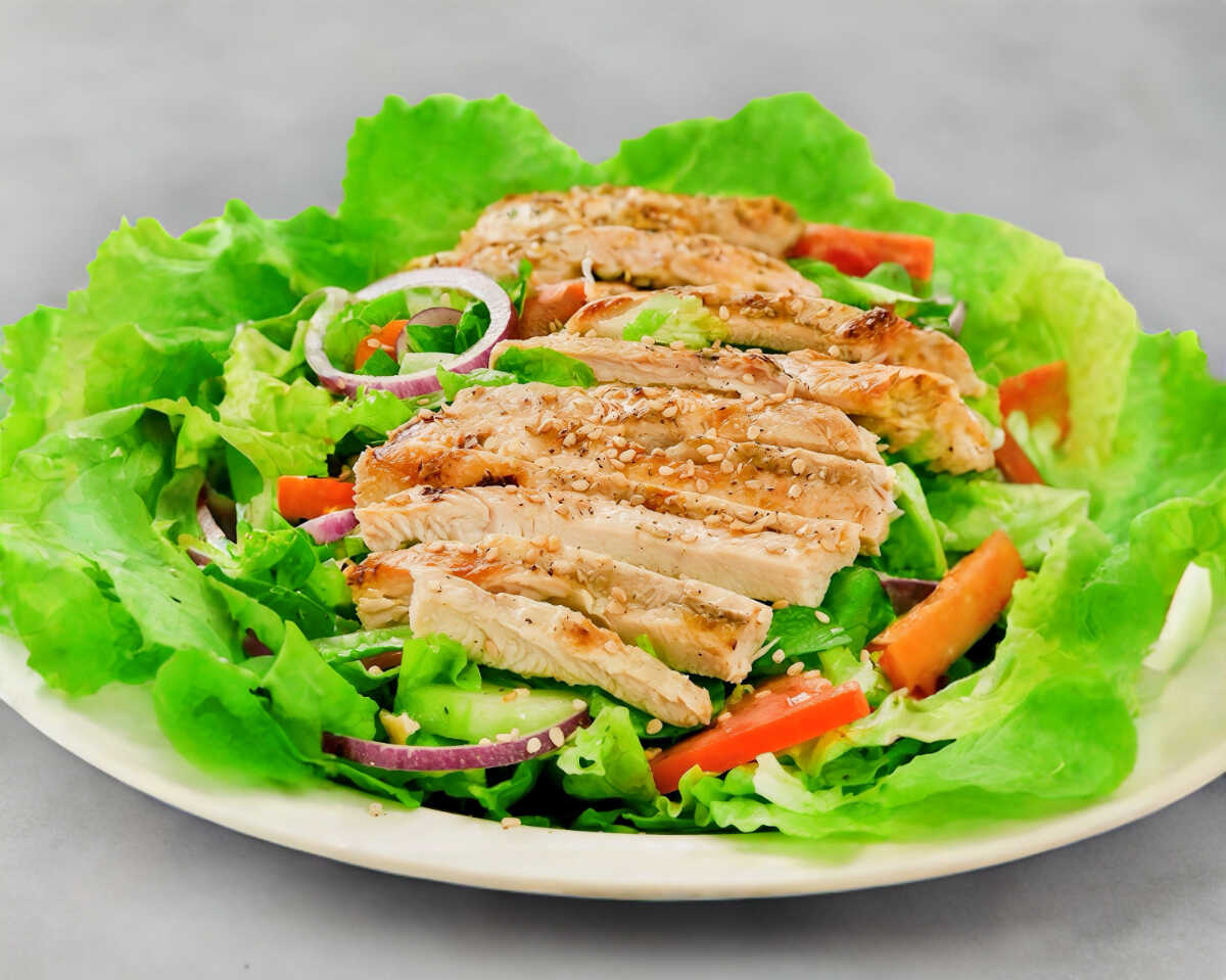 Pechuga asada(150gr) + Ensalada fresca con: lechugas mixtas, jitomate, zanahoria, pepino, jicama, betabel