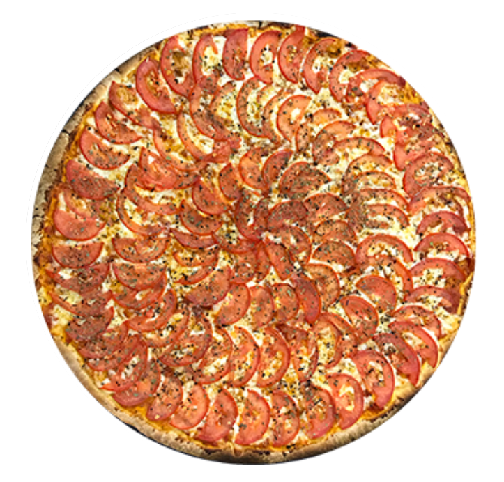 Pizza delgada de 40 cm. en horno de piedra con todo el sabor de la salsa de la casa, nuestra mezcla de quesos, rodajas de jitomate y albahaca