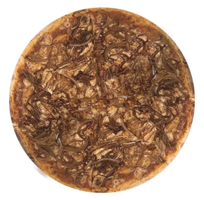 Pizza delgada de 40 cm. en horno de piedra con todo el sabor de la salsa de la casa y nuestra mezcla de quesos y cebolla caramelizada al estilo UNDICI