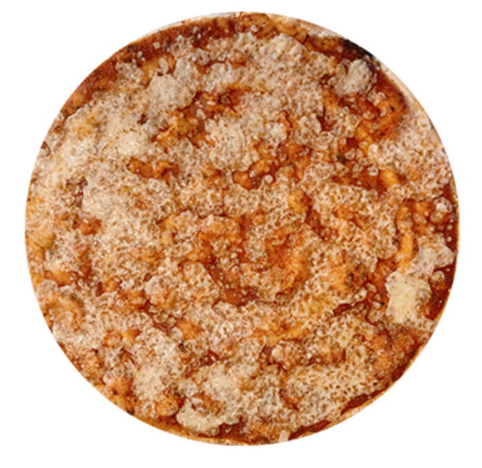 Pizza delgada de 40 cm. en horno de piedra con todo el sabor de la salsa de la casa y nuestra mezcla de quesos