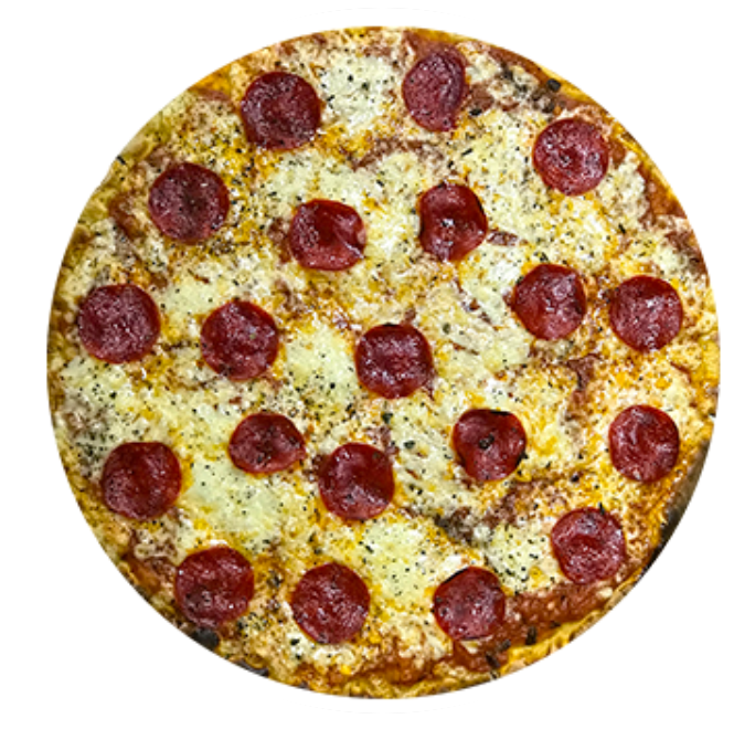 Pizza delgada de 40 cm. en horno de piedra con todo el sabor de la salsa de la casa, nuestra mezcla de quesos y pepperoni