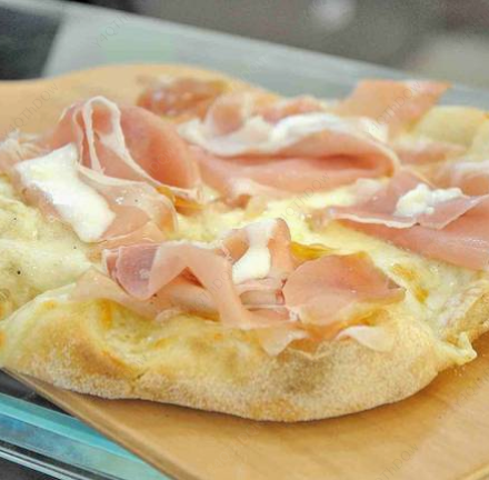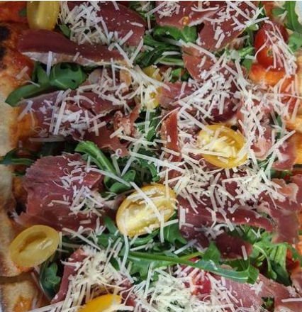 Salsa de tomate italiano, jamón serrano italiano, arugula, tomate Cherry y queso parmesano.
