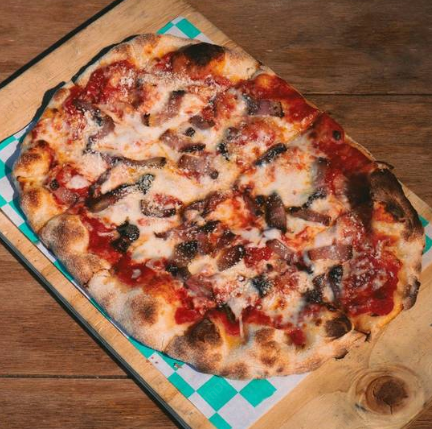 Salsa de tomate, queso mozzarella, pepperoni, guanciale, jamón, chorizo italiano y miel picante.