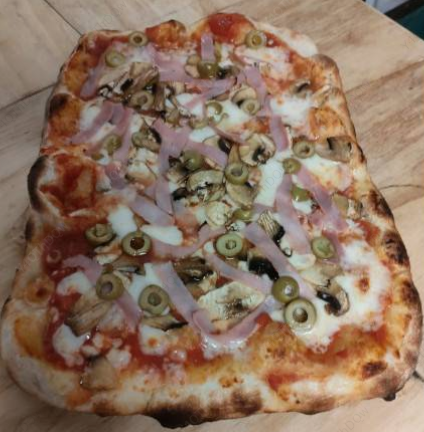 Salsa de tómate italiano, queso mozzarella, jamón de pierna, hongos champiñón, alcachofa y aceitunas.