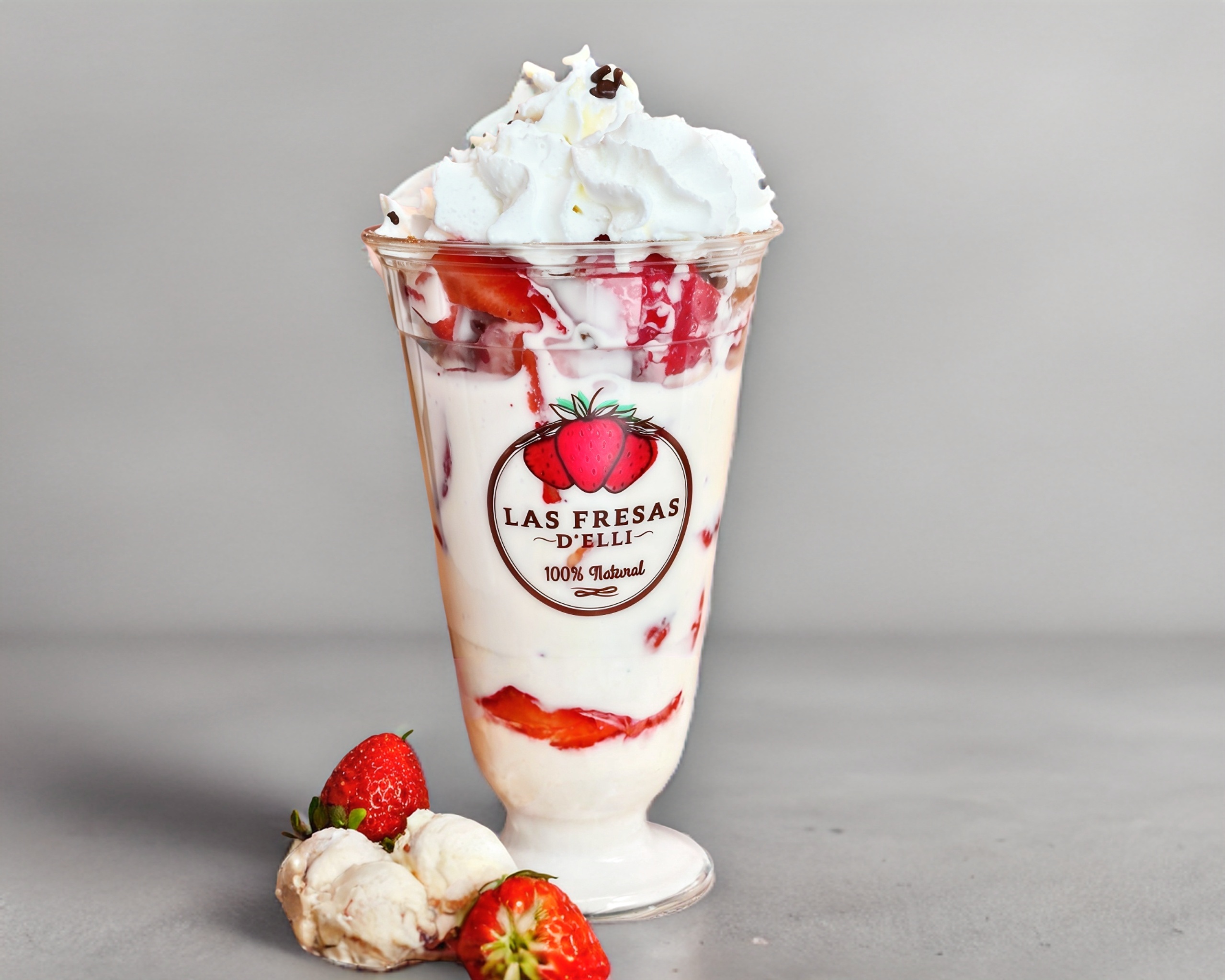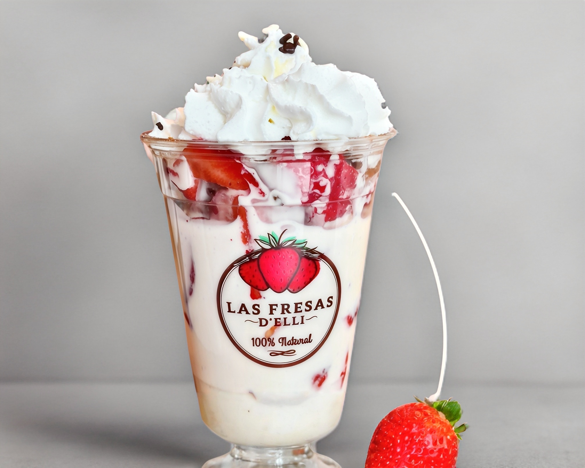 Disfruta de la delicia fresca de nuestras fresas con crema de 910ml, incluye nuez crujiente, un toque de canela, lechera dulce y chispas de chocolate.