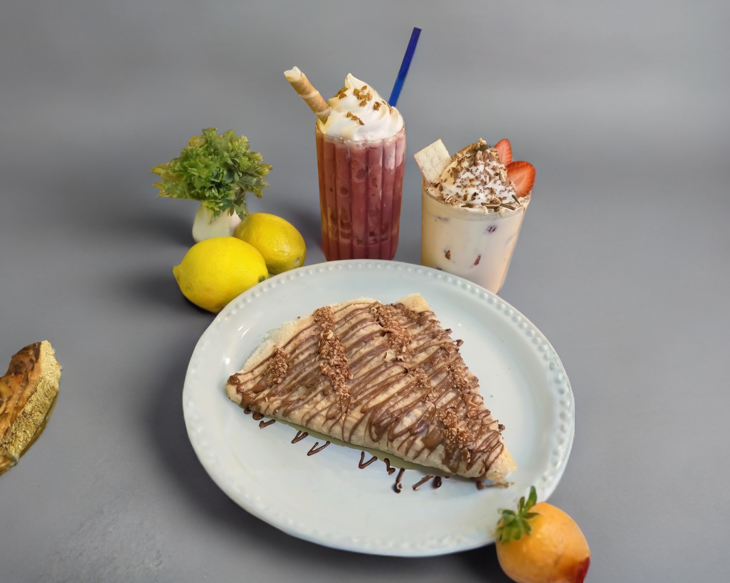 Platillo personal, ¡Prueba nuestra irresistible crepa dulce! Suave y deliciosa, rellena de las cubiertas de tu preferencia y la fruta que mas te agrade, espolvoreada con azúcar glass, nuez y chispas de chocolate.. ¡Un capricho perfecto en cada bocado!