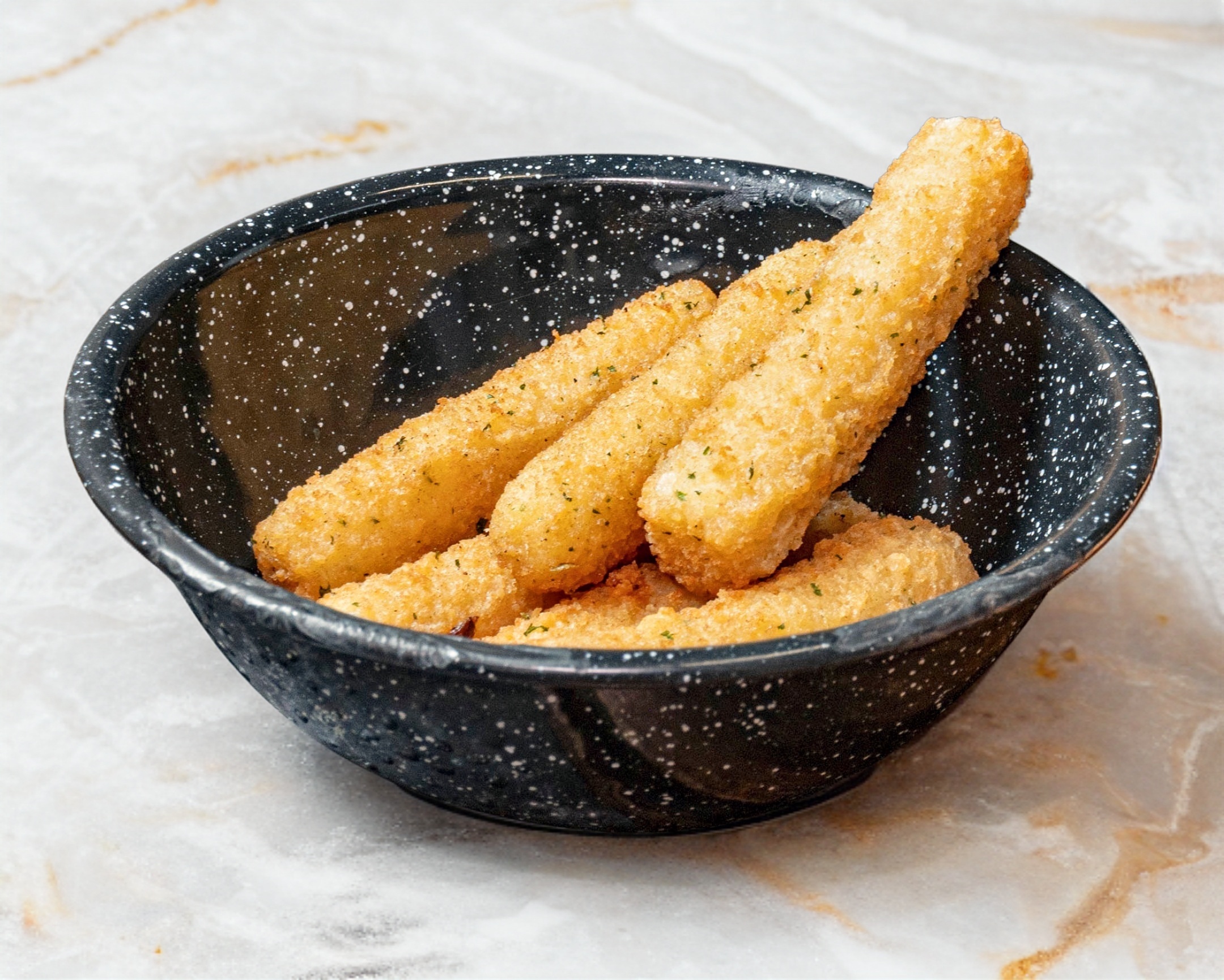Dedos de queso mozarella / Cheese Fingers acompañados de aderezo de Ajo Perejil