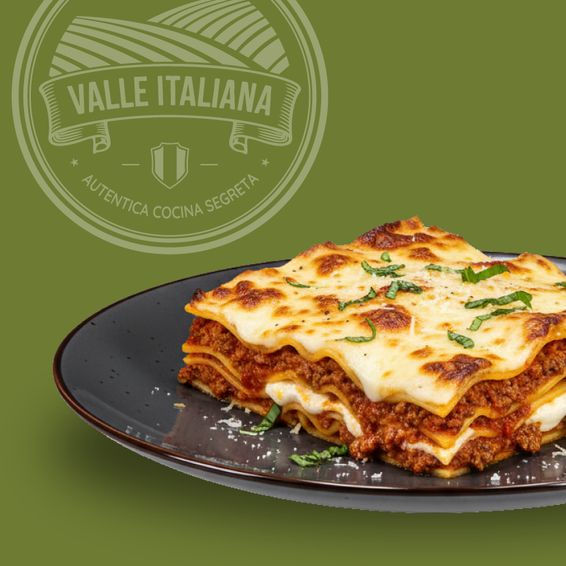 Doble porción del tradicional horneado de la nonna; capas de pasta, salsa boloñesa, bechamel y queso mozzarella gratinado.