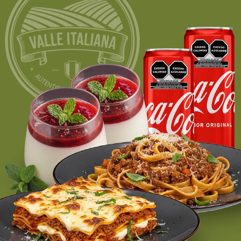 Lasagna*1 + Panna Cotta Fresa*2 + Coca Cola Clásica 350 ML*2 + Bolognesa*1