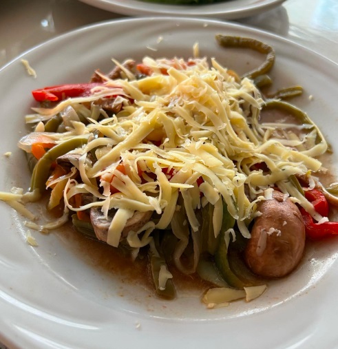 Carne de soya, pimiento, piña, nopales y queso manchego gratinado.