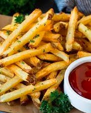 Papas gajo fritas en aceite, acompañadas con un toque de paprika.