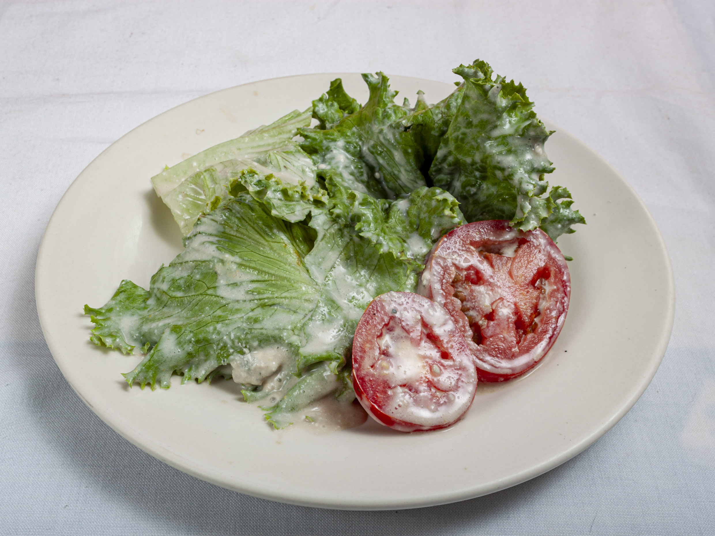 Lechuga, jitomate, y aderezo de auténtico queso roquefort. Aproximadamente 4 ord. Chicas.