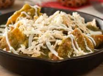 Chilaquiles verdes o rojos acompañados con crema, queso, frijoles de la olla. Incluye café americano 10 oz. y ensalada de frutas.