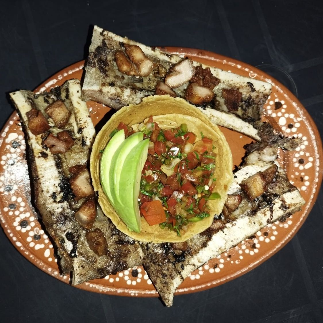 3 pzas de tuétanos, acompañadas con chicharrón de barriga y pico de gallo.