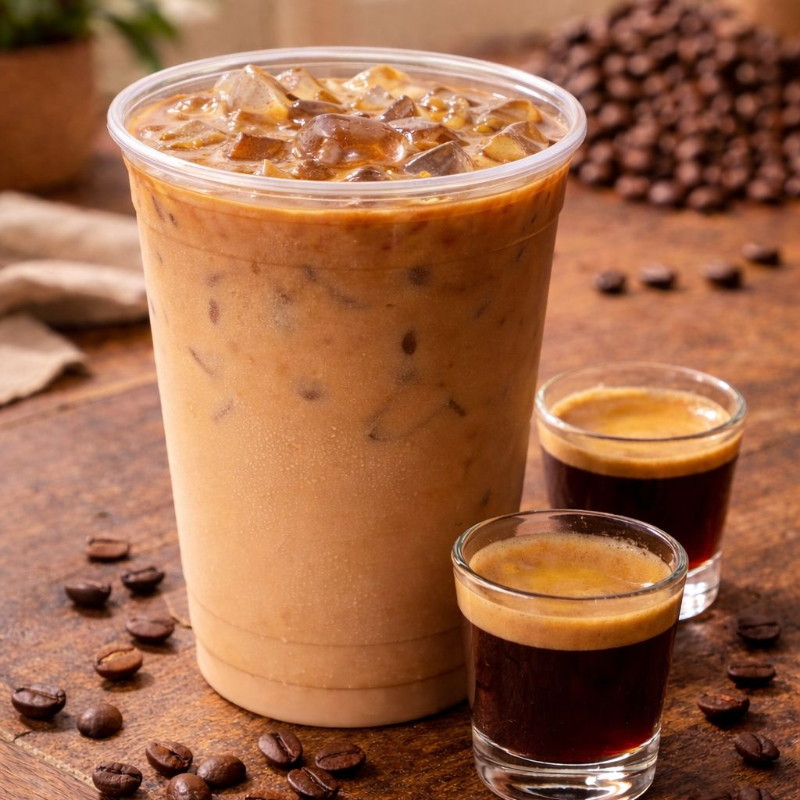 Una bebida fría y cremosa, elaborada con café espresso intenso y leche perfectamente mezclados sobre hielo. Su sabor equilibrado y refrescante es ideal para quienes disfrutan el toque fuerte del café con la suavidad de la leche. ¡Disfruta esta bebida acompañada de tu ensalada o de tu platillo favorito y dale un toque delicioso a tu día! ☕✨ (450 ml)