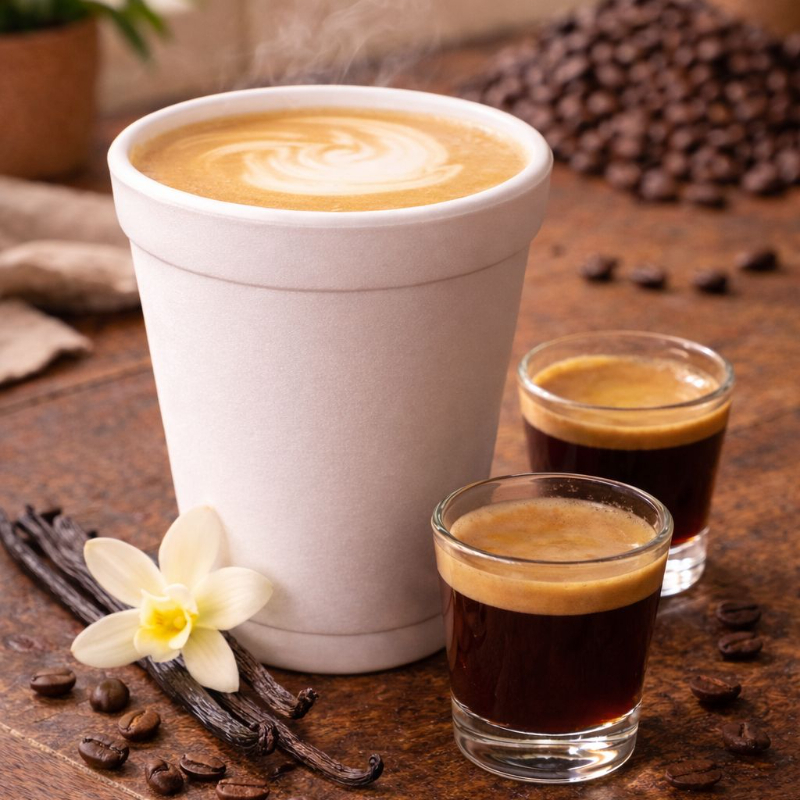 Una mezcla suave y equilibrada de espresso intenso con leche vaporizada cremosa, aromatizada con un toque de vainilla natural que aporta dulzura y calidez. Preparado en máquina de espresso para lograr una textura aterciopelada y un sabor reconfortante en cada sorbo. La espuma puede variar según el manejo del pedido, sin afectar su sabor ni cremosidad