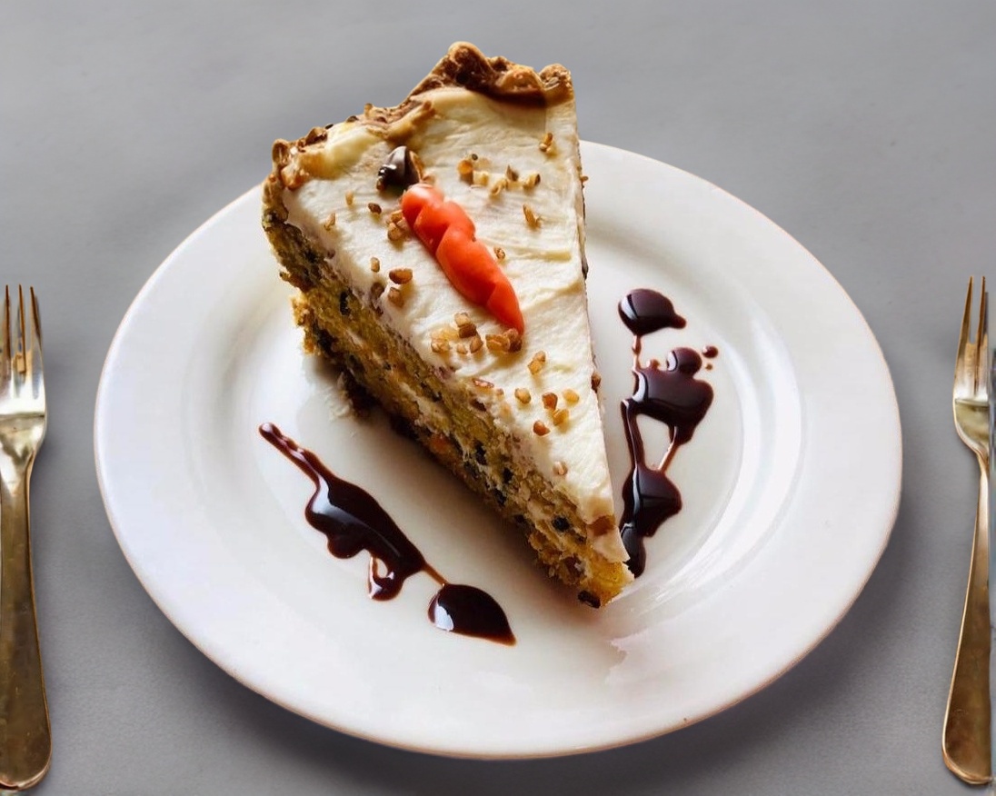 Rebanada de pastel de zanahoria elaborado con receta de la casa.