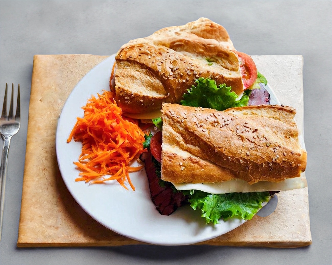 Roast Beef, queso, jitomate y aguacate, mayonesa y mostaza.