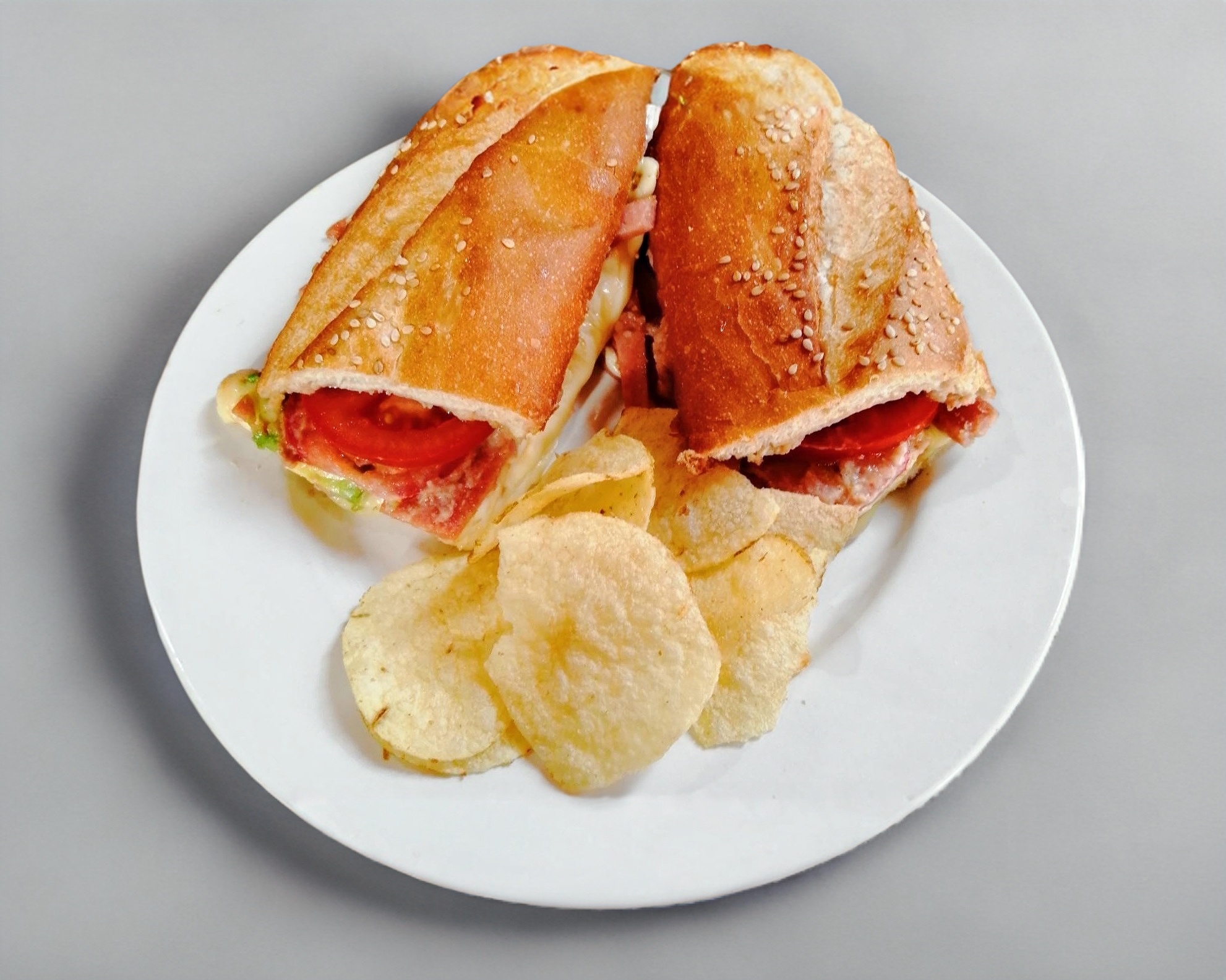 Salami, queso manchego, lechuga italiana, jitomate y aguacate, mayonesa y mostaza.