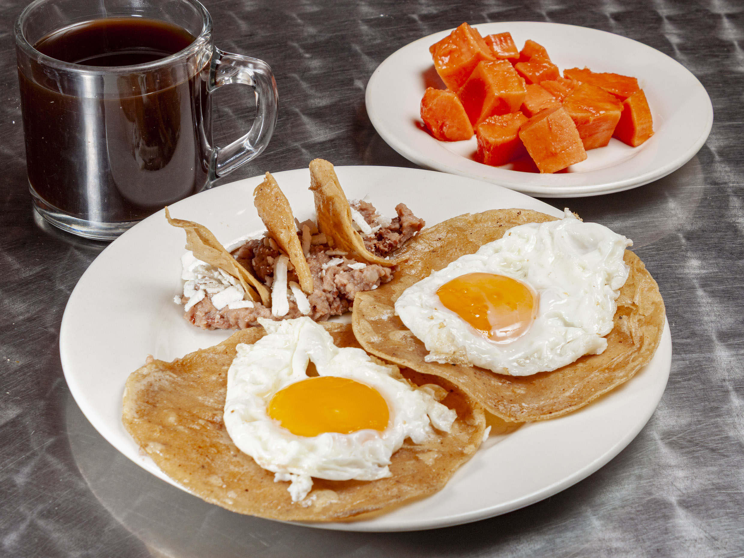 Huevos al Gusto 1 Ingrediente, Fruta y Café