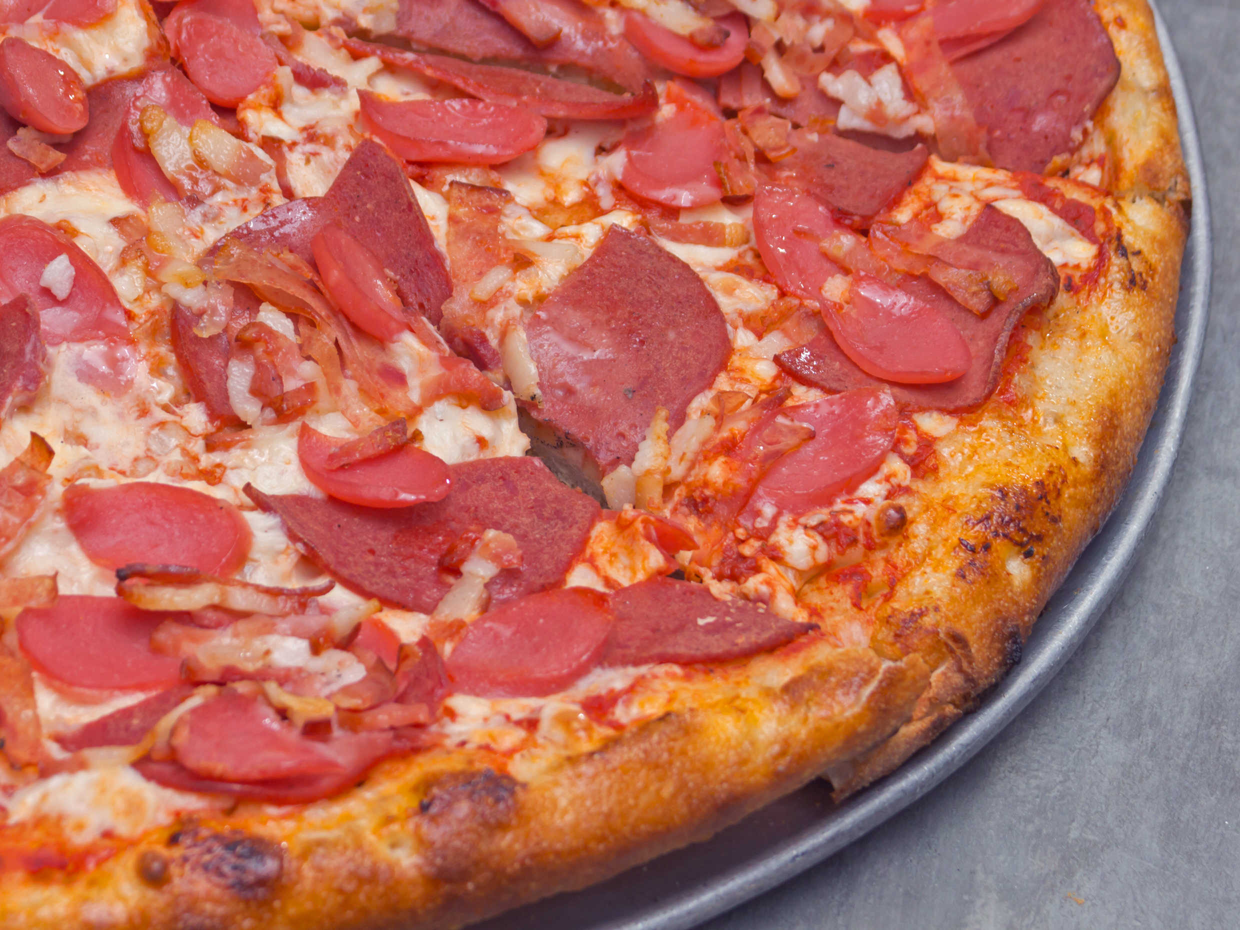 Salami, salchicha y tocino de 12 rebanadas.