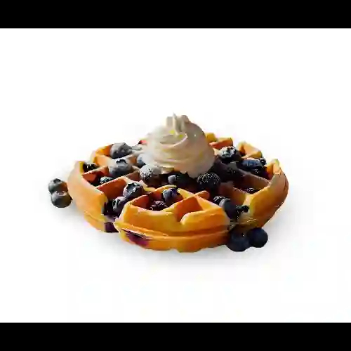 Waffle relleno de mora azul, con crema batida y toque de azúcar glass.