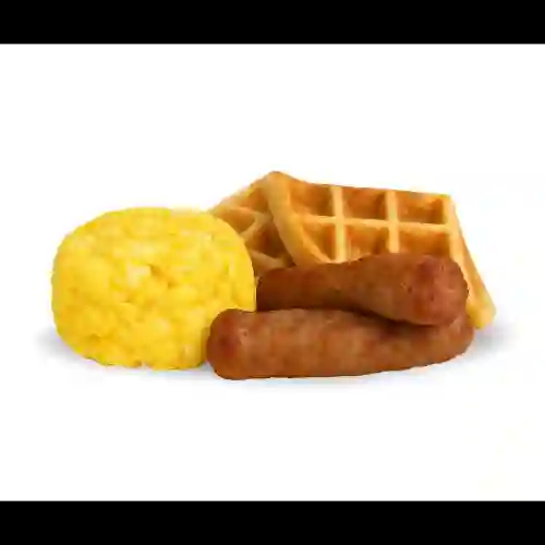 1/2 Eaffle, huevo revuelto y salchicha jimmy dean.