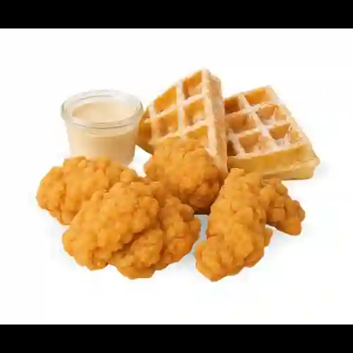Ponle maple. ¡Una mordida y lo entiendes todo! pollo frito (90 g) mas 1/2 waffle y aderezo secreto.