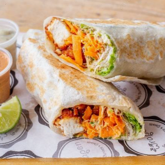 Boneless, germen, zanahoria, lechuga, aderezo y parmesano con albahaca. Un wrap es una variante de taco o burrito, que incluye rellenos típicos de sándwich envueltos en una tortilla.