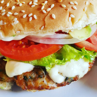 Carne de res, tocino, queso Oaxaca y queso manchego.