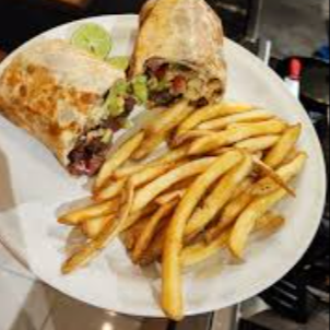 2 mini burritos, (bistec, queso, frijoles), mas papas y refresco.