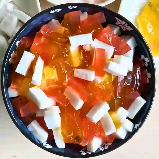 Cubitos de gelatina de sabores frutales.